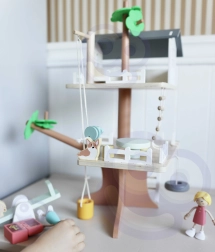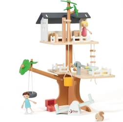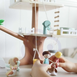 A Classic World fára épített babaháza a fantázia és történetek világába hívja a gyerekeket. A két szintes kialakítás korlátokkal, létrával és kis házikóval rengeteg játékhelyzetet kínál – a mozgatható csigával és vödörrel történő kincsemeléstől kezdve a hintázáson át az állatkákkal való játékig. A szett ideális a finommotorika, a kreativitás és a szociális készségek fejlesztéséhez közös játék során.