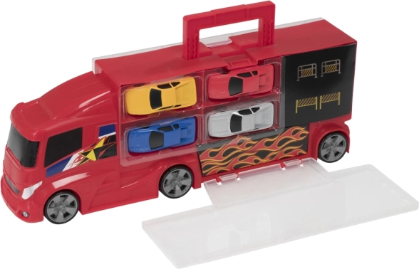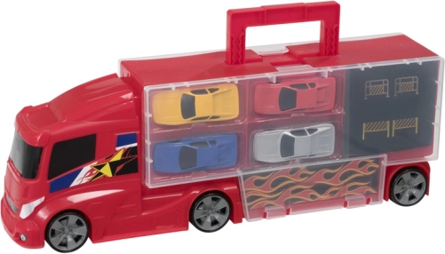 A Teamsterz szállító kamion arra lett tervezve, hogy a gyerekeket az akciódús kalandok és kreativitás világába repítse. A szett tartalmaz 4 különböző modellű kisautót, amelyeket könnyen be lehet tölteni a kamionra, és elindulni a különféle útvonalakon. Ez a játékszett nemcsak fejleszti a finommotorikát és a koordinációt, hanem órákon át tartó szórakozást is nyújt.<47/p>