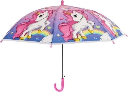 Az unikornisos gyermek esernyő a szürke időt is szórakoztatóvá varázsolja. A színes, szivárványos unikornis minta a gyerekek kedvence lesz, miközben a megbízható szerkezet megóvja őket az esőtől. A automata (felpattanó) nyitásnak köszönhetően a kisebbek is könnyen tudják használni.