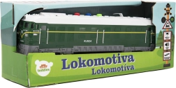 A 23 cm hosszú, szórakoztató műanyag mozdony minden kis mozdonyvezető örömére szolgál. Fényhatásokkal, valósághű géphangokkal és sima mozgással a lendkeréknek köszönhetően. A 3× AG13 elem a csomag része, így azonnal indulhat a pályára.