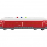 A mozdony azonnal játékra kész – a csomagban 3× AG13 elem található. A minőségi kidolgozás részletes elemei, mint a kapaszkodók és szellőzőnyílások, serkentik a fantáziát és fejlesztik a finommotorikát.