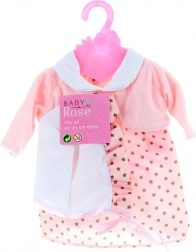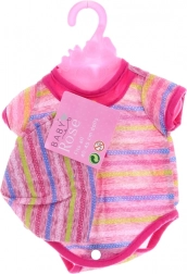 Adj új ruhatárat a babáknak a BABY ROSE 40–45 cm-es babaruhák színes kollekciójával. A ruhák könnyűek, kellemes tapintásúak, és a záródásoknak köszönhetően a kisebb kezek számára is alkalmasak. Minden darab átláthatóan műanyag vállfán, védőtasakban található.