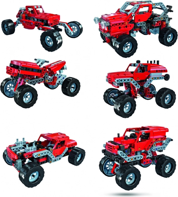 A műanyag alkatrészek úgy vannak tervezve, hogy lehetővé tegyék különféle struktúrák, például motorok és terepjárók kreatív összeépítését.