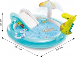 Ideális megoldást kínálunk a forró nyári napokra - az INTEX felfújható gyermekmedencéjével, amely végtelen lehetőségeket kínál a vízi szórakozásra a gyerekeknek. Nagy méretek 201 x 170 cm biztosítják a megfelelő helyet a játék számára, és a puha felfújható landoló felület garantálja a biztonságot a csúszda során. A medencéhez leeresztő szelep van csatlakoztatva a gyors vízelvezetéshez.