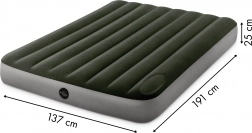 Felfújható ágy 1,37 m × 1,91 m × 25 cm méretben. Maximális teherbírás 272 kg. A felfújási idő 3,5 perc.