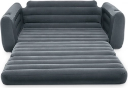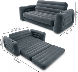 Az Intex velúr kanapé, amely 231x203x66 cm méretű, ideális két személy számára. Tartós PVC anyagból készült, puha velúrral borított, könnyű leereszteni.