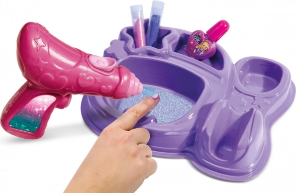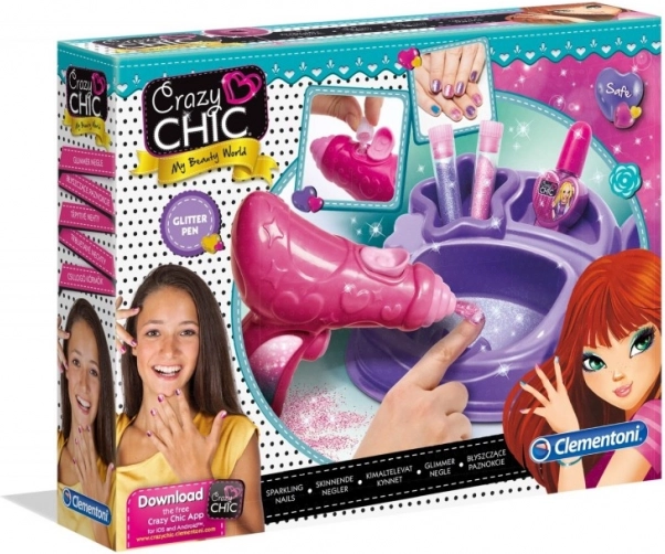 A Crazy Chic készlet mindent tartalmaz, amire a kis stylistoknak szükségük van a szépen ápolt körmökhöz. Vidd fel a lakkot, használd a csillámkilövő tollat, és pillanatok alatt fényes, színes és feltűnő díszítést készíthetsz. Az intuitív állomás mindent a helyén tart, és még kellemesebbé teszi az alkotást.