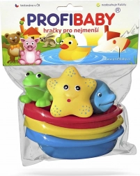 A három műanyag hajóból és állatkáiból álló vidám készlet minden fürdést örömteli játékká varázsol. A játék Magyarországon készült, nem tartalmaz ftalátokat, és megfelel a magyar minősítéseknek. A különböző színek és formák fejlesztik a gyermeki fantáziát és a finommotorikát.