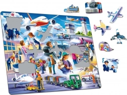 Merülj el a pilóták, légiutas-kísérők és utasok világában a LARSEN Repülőtér puzzle-lel. A kép szabálytalan, hagyományos zárak nélküli darabokból áll, ami friss kihívást nyújt, és fejleszti a gyerekek képzelőerejét és finommotorikáját. A masszív keretnek és a táblás kivitelnek köszönhetően az összerakás könnyebb, a tárolás pedig gondtalan.