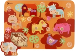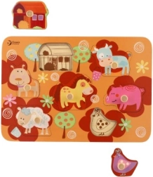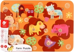 A fa farmás kirakó játék ideális a legkisebbeknek 18 hónapos kortól, akik elkezdik felfedezni a körülöttük lévő világot. E játék segítségével a gyermekek nemcsak finom motorikus készségeiket és kognitív képességeiket fejlesztik, hanem fantáziájukat és megkülönböztető képességeiket is. Minden darab biztonságos fogantyúkkal rendelkezik a könnyű kezelés érdekében, és kiváló minőségű fából készült, ami biztonságot nyújt a vadabb játék közben is.