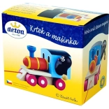 Aranyos fa húzós vonat a népszerű kisvonatozóval, mint mozdonyvezető, minden gyermeket megörvendeztet. Ez a termék megfelel az EU játékbiztonsági követelményeinek, és 3 éves kortól alkalmas gyerekek számára.