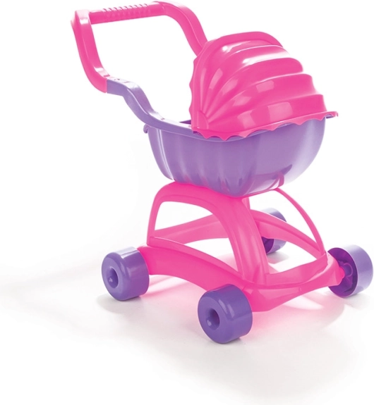 Műanyag babakocsi kupolával kislányoknak, mely nagyon könnyű és könnyen összeszerelhető. Megfelel a szigorú európai szabványoknak, és egészségre nem ártalmas anyagból készült.