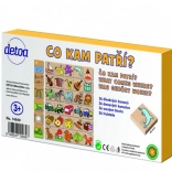 Detoa fa puzzle Mi hova tartozik egy didaktikai játék, amely segít a gyerekeknek felismerni a tárgyakat és hozzárendelni őket a megfelelő képekhez. Ez a játék ideális a logikai gondolkodás és a memória fejlesztésére 3 éves kortól.