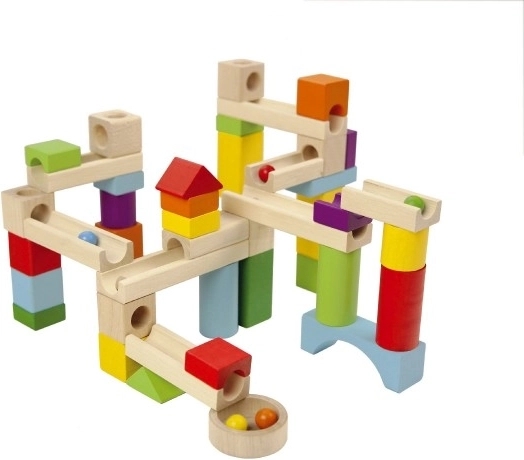 A Detoa golyópálya szórakoztató és oktató játék, amely nemcsak a gyerekeknek szól, hanem azoknak a szülőknek is, akik meg akarják osztani az építés és játék örömét a gyermekeikkel. Ez a készlet 48 fa darabot és 10 fa golyót tartalmaz, amelyek könnyen kombinálhatók és építhetők. Az építőkészlet támogatja a finommotorika, a kreativitás és a térbeli képzelet fejlesztését.