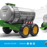 „Tartálykocsi” utánfutó Joskin, négykerekű, zöld színben, amelyet valóban fel lehet tölteni vízzel. Kompatibilis a Falk traktorokkal. Kiváló minőségű műanyagból, Franciaországban gyártva.