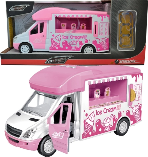 Az interaktív kialakítás a nyitható részekkel támogatja a valósághű fagyiárus szerepjátékot és a vásárlók kiszolgálását.