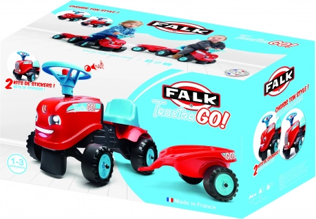 Adj első vezetési élményt a gyerekeknek a FALK GO járós traktorral. A masszív műanyag szerkezet, az alacsony ülés és a széles keréknyomtáv kiváló stabilitást és biztonságot nyújt. A levehető utánfutónak köszönhetően a kisfarmerek játékokat vagy apróságokat szállíthatnak, míg a kormányon lévő kürt még valóságosabbá teszi a mókát.