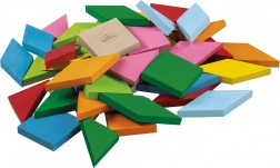 A csomagban 49 fa elem található két méretben (3 × 3 cm és 3 × 5,5 cm), valamint 4 papírból készült mintalap a könnyű kezdéshez és inspirációként. A 20 × 20 × 3,7 cm-es kompakt csomagolás megkönnyíti a tárolást és a hordozást. Az élénk színek felkeltik a figyelmet, és megkönnyítik a színek és formák tanulását.