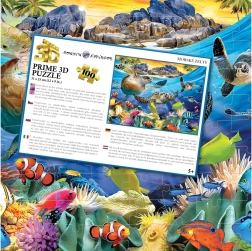 Élvezd a szórakozást a 3D optikai hatású gyerekpuzzle-lel, amely mélység érzetét kelti és életre kelti a teknősös tengerpart motívumát. 3 éves kortól ideális, fejleszti a koncentrációt, a finommotorikát és az építés örömét. Összerakva kompakt méret: kb. 31 × 23 cm.
