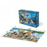 Fedezd fel a térbeli kirakózás varázsát a 3D puzzle teknősös tengerparttal. A speciális optikai hatás mélységet ad a képnek, így egyes alakok vagy tárgyak távolibbnak tűnnek, mint az előtérben lévők. A gyerekek kirakás közben fejlesztik finommotorikájukat, türelmüket és a részletek észlelését, miközben örömüket lelik a kész képben.