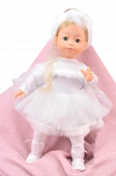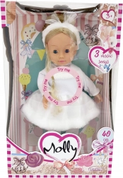 A bájos Bambolina Molly balerina baba minden kis tánckedvelőt elvarázsol. Pislogó szemekkel, hosszú hajjal és gyönyörű balerina ruhácskával rendelkezik. 3 dalt tud lejátszani, és 40 cm-es méretének köszönhetően a kisebb gyerekeknek is kényelmesen kézre áll. 3 éves kortól ajánlott, a LR44 elemek a csomag részét képezik.