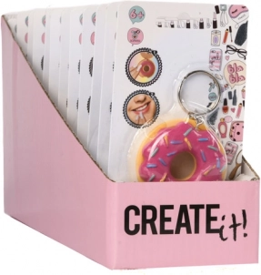 Fedezd fel az édes kiegészítők világát ezzel a fánk alakú ajakbalzsammal. A praktikus kulcstartó gondoskodik róla, hogy mindig kéznél legyen – a kulcsokon, tolltartón vagy hátizsákon. A balzsam rózsaszín, és három vidám motívumban érhető el, amelyek külsejükkel és illatukkal egyaránt elbűvölnek.