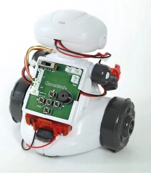 - Nyomtatott áramköri lap, villanymotorok, IR szenzorok, mikrofon, elemtartó, LED, mágnes, gumik, fej, test, karok, kerekek, mágnes tartó, filctoll tartó, csavarok, cél, illusztrált útmutató (CZ/SK/PL/HU)