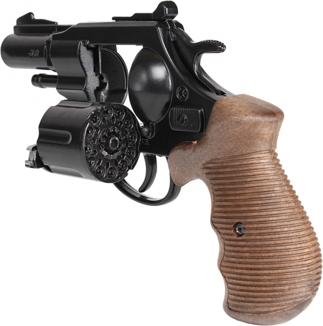 Stílusos rendőrségi revolver a Gold Collection sorozatból, élethű megjelenéssel, fém kivitelben és 12 lövéses kapszlis rendszerrel a biztonságos szórakozáshoz. Kompakt méreteinek (21 × 9,5 × 4 cm) és a spanyol minőségi gyártásnak köszönhetően ideális rendőrös szerepjátékhoz, jelmezekhez és gyűjtőknek is.