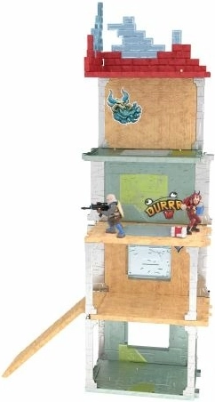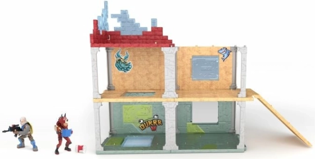Ez a játékkészlet pontosan lemásolja a Fortnite játékmenet struktúráit, beleértve a piros tetős tornyot és a fa paneleket.