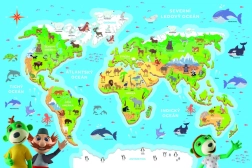 Oktató puzzle gyerekeknek a világ térképével és állatokkal, amely szórakoztató módon tanítja a gyerekeket földrajzra. Tartalmazza a leírásokat cseh nyelven.
