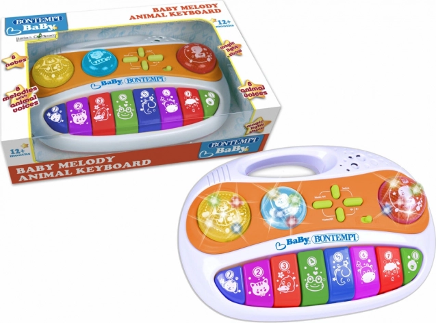 Baby Melody zenélő doboz 8 billentyűvel rengeteg szórakozást és zenei lehetőséget kínál a kisgyermekek számára. Az egyszerű kezelhetőségnek és a változatos dallamoknak köszönhetően minden gyermek kedvenc játékává válik.