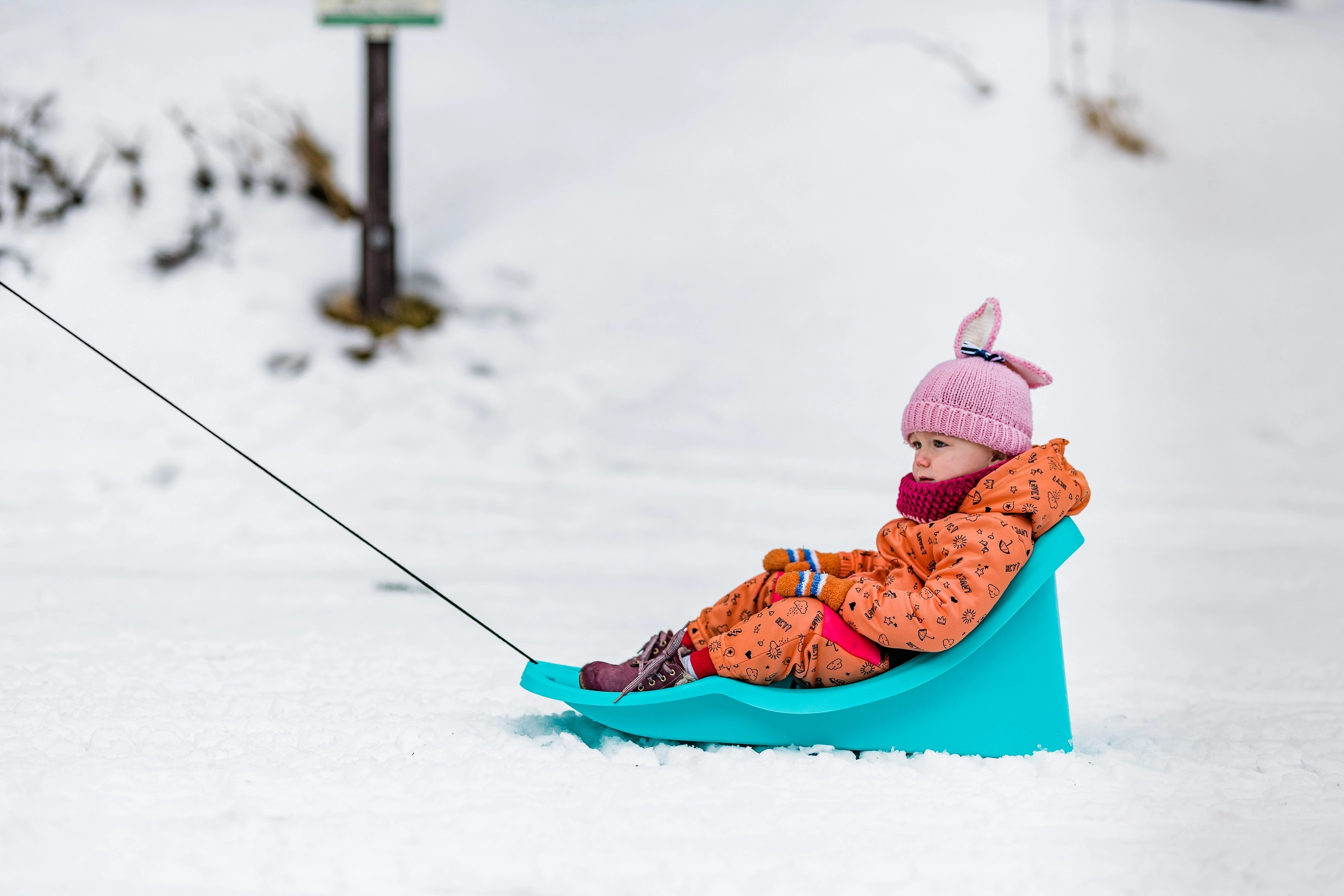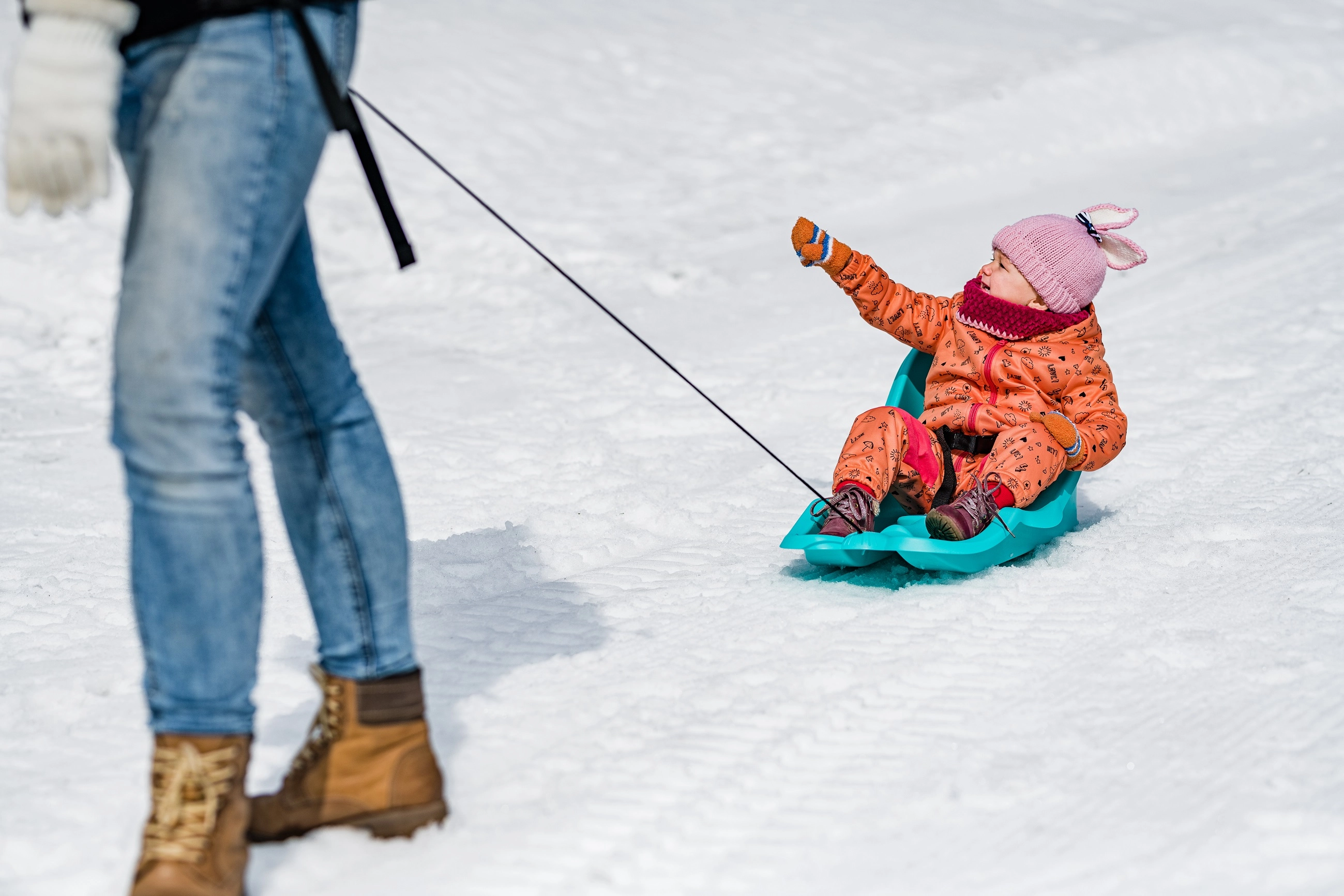 A praktikus vontatókötél markolattal megkönnyíti a szülőknek a bob húzását a havon, akár hosszabb távokon is.