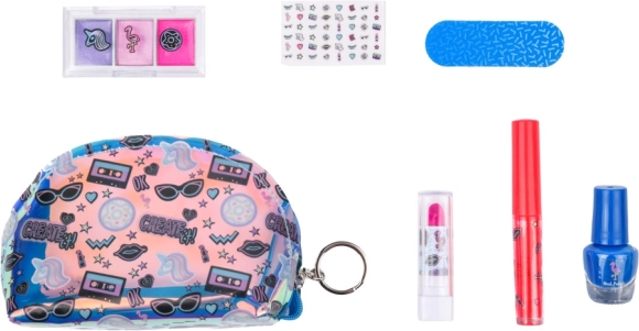 Fedezd fel a sminkelés kreatív világát a CREATE IT! ajándékszettel, amely élénk színeket és vidám kiegészítőket kombinál egy átlátható, cipzáras kozmetikai táskában. A gyerekek könnyedén kipróbálhatnak különféle stílusokat, és elsajátíthatják a köröm- és ajakápolás alapjait – mindezt biztonságosan tárolva és azonnal használatra készen.
