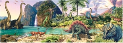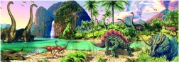 Ez a puzzle 150 darabból egy lenyűgöző jelenetet alkot tele dinoszauruszokkal trópusi környezetben, ahol a gyerekek tanulhatnak az ősi világról.