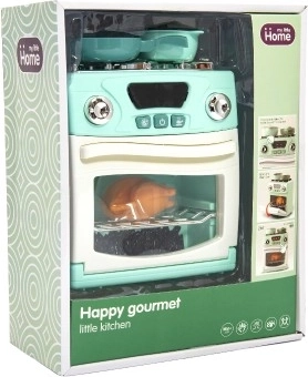 A készlet része egy tűzhely, sütő, két lábas és sült csirke a teljesebb játékélmény érdekében.