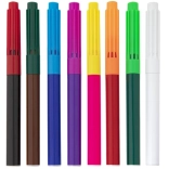 A kényelmes, hengeres test és a szellőző kupakok jó fogást biztosítanak, és segítenek megelőzni a hegy kiszáradását. A finom vonal a részletekhez is alkalmas, míg a telt tinták erőteljes színeket adnak a papíron. A készlet 3 éves kortól ajánlott.