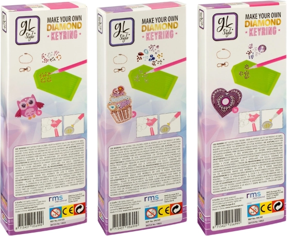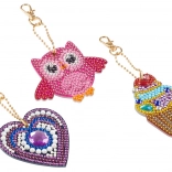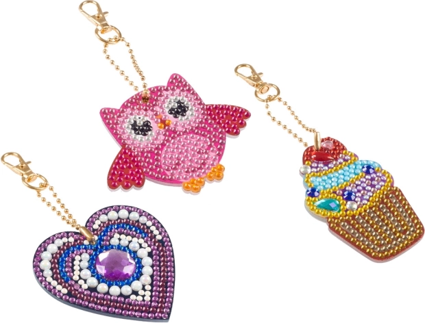 Ez a készlet három különböző kulcstartó elkészítését teszi lehetővé bagoly, fagylalt és szív formában. Minden kulcstartó színes kövekkel van díszítve, amelyek személyre szabott stílust kölcsönöznek kulcsaidnak.