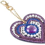 Ez a kulcstartó nagy lila kővel és fehér és kék kövekkel van körülvéve. Az aranylánc és a csat könnyű rögzítést tesz lehetővé.
