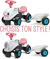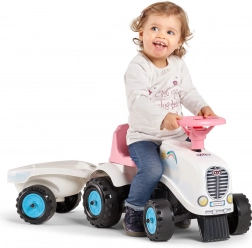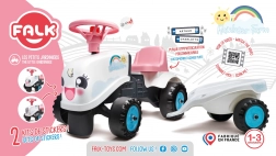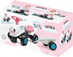 A Falk Rainbow pedálos traktor fehér kivitelben, levehető utánfutóval minden kis mezőgazdász álma. Minden részletre kiterjedő pontossággal készült és ideális 12 hónapos kortól. A jármű műanyag kerekekkel és minőségi anyagokból készült szerkezettel rendelkezik.