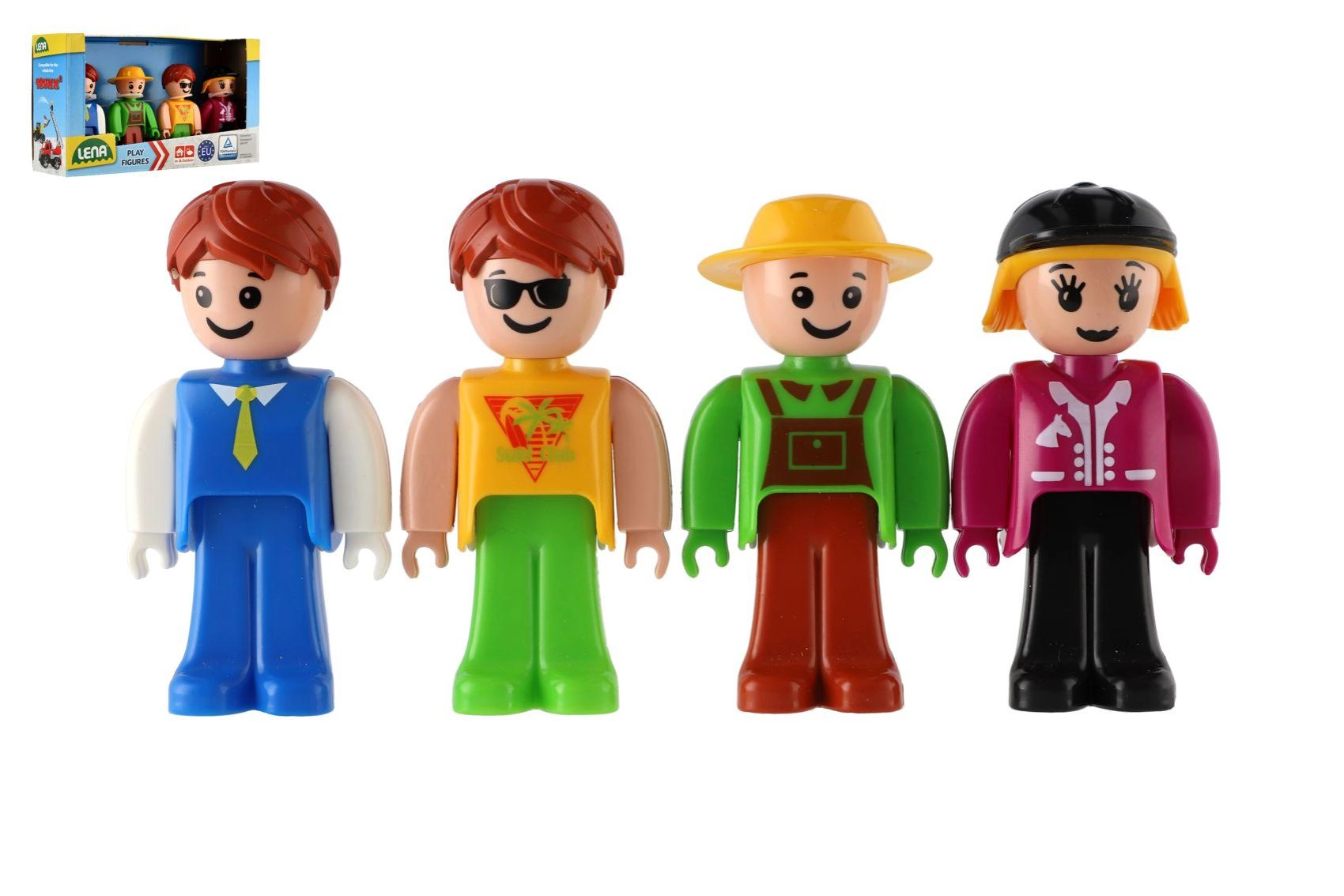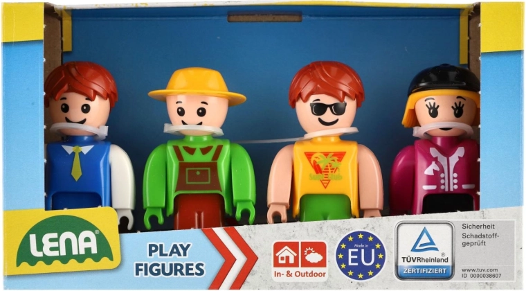 A zöld LENA figurakészlet változatos játékélményt és fantáziafejlesztést kínál a gyerekeknek. A négy strapabíró figura könnyen kézben tartható a kicsi kezek számára, mozgatható végtagokkal rendelkezik, és ideális az önálló játékhoz vagy építőkészletek és járművek kiegészítéséhez.