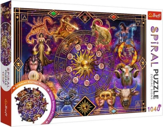 Fedezze fel az eredeti szórakozást a TREFL spirálpuzzle-lel, amely kirakás után egyedülálló spirálformát alkot az állatövi jegyek szimbólumaival. Az 1040 darabos készlet lebilincselő motívumot, szokatlan spirális kirakási élményt és minőségi kivitelezést kínál, fényt visszaverő papírral az egyszerűbb kirakásért. Ideális az asztrológia kedvelőinek és a tapasztalt puzzlerajongóknak is.
