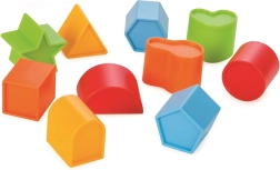 Színes geometriai elemek és hozzájuk illő nyílások fejlesztik a logikát, a finommotorikát és a kéz–szem koordinációt már 12 hónapos kortól.