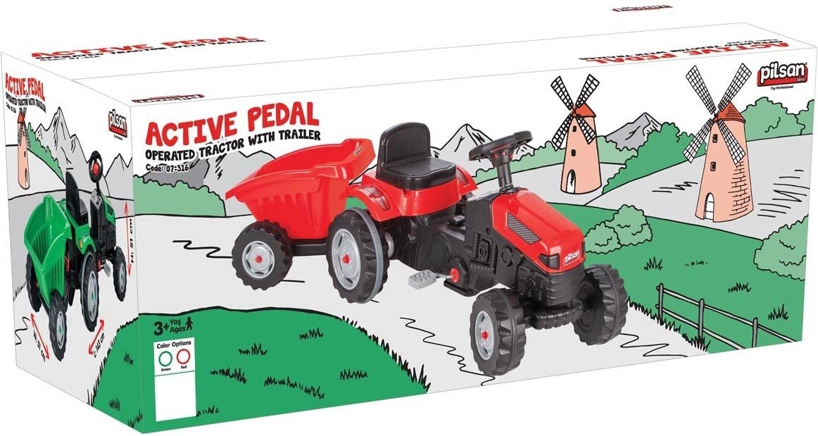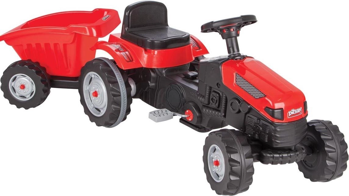 A Pilsan pedálos traktor vonzó piros színben autentikus vezetési élményt nyújt a gyerekeknek. A stabil szerkezet, a kényelmes ülés és a csatlakoztatható utánfutó remek társsá teszi a kertben, a játszótéren vagy az udvaron. Az egyszerű, kormánnyal történő irányításnak köszönhetően a gyerekek élvezhetik a valósághű „vezetést” és a sok biztonságos szórakozást.