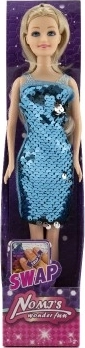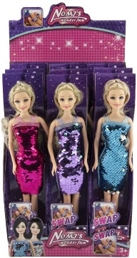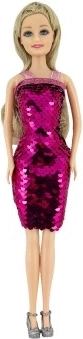 Ez az elegáns baba készen áll bulira és divatbemutatóra egyaránt. A kétoldalú flitterekkel díszített ruha azonnali szórakozást nyújt – egy egyszerű kézmozdulattal megváltoztatod a színhatást, és egy pillanat alatt új stílust teremtesz. A merev műanyag test stabil tartást és könnyű öltöztetést biztosít.