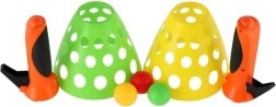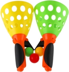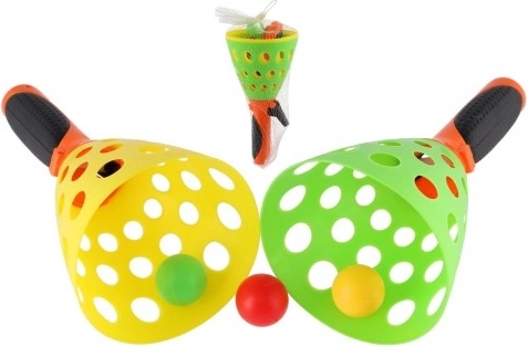 A Catch Ball készlet egyszerű, mégis magával ragadó játék gyerekeknek és felnőtteknek egyaránt. A perforált, könnyű műanyag kosárkák biztosítják a levegő akadálytalan áramlását, így a labda könnyebben eldobható és elkapható. Remekül fejleszti a kézügyességet, a figyelmet és a csapatmunkát.