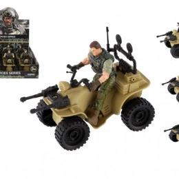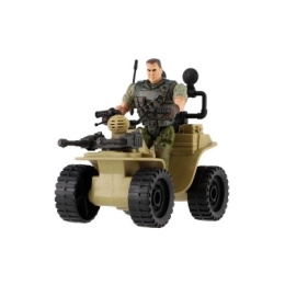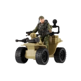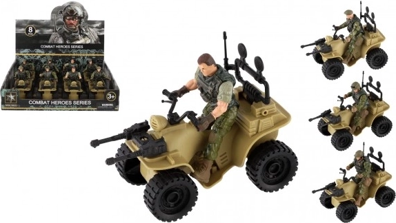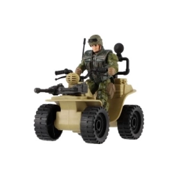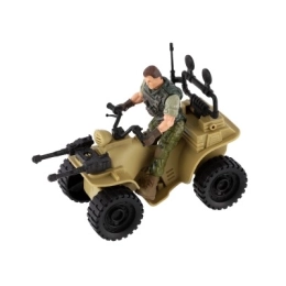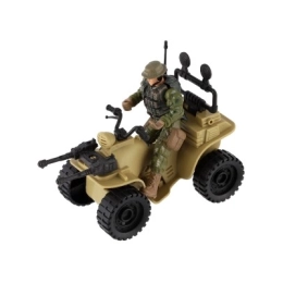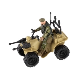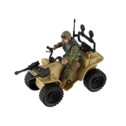 Ez a négynégyes realisztikus részleteket kínál, beleértve a katona terepszínű öltözékét és a nagy fekete gumikat.