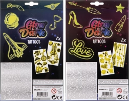 Ez a világító tetoválás készlet ideális azoknak a lányoknak, akik ragyogást akarnak adni stílusuknak. Élvezd a csomagban található különböző mintákat, amelyek két tetováláslapot tartalmaznak. Egyszerűen vágd ki, helyezd a bőrre, nedvesítsd be szivaccsal, és kész! Alkalmazása gyors és szórakoztató.