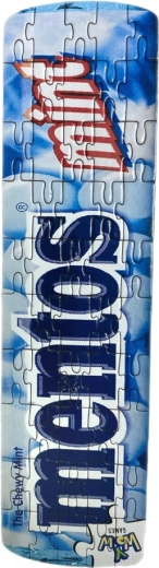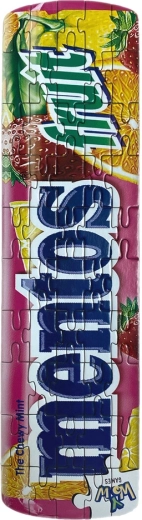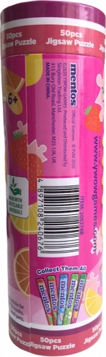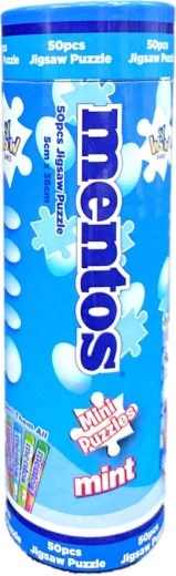 Doboz a kedvelt MENTOS cukorkák dizájnjával. A kirakó 50 darabból áll, a doboz és maga a kirakó is újrahasznosítható anyagokból készült. A termék 6 éves kortól ajánlott.