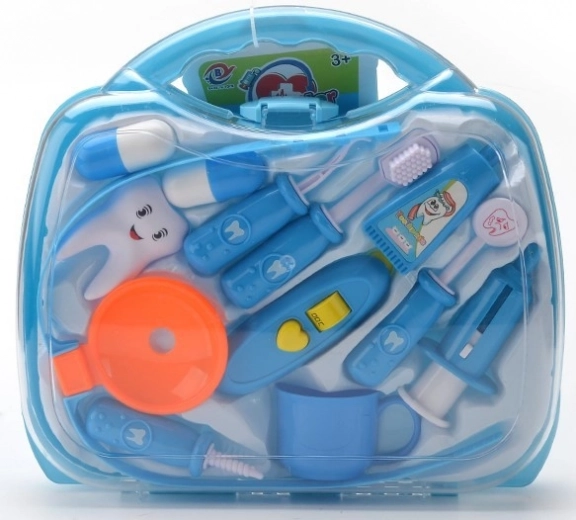 Az átlátszó, kék bőrönd különféle fogászati kellékeket rejt, köztük fogkefét, „fogkrémet” és fogmodellt. Remek a higiénés szokások gyakorlására és a kreatív fogorvosos szerepjátékra.