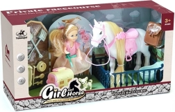 Ez a farmerszett elhozza a gazdasági állatok világát közvetlenül a gyerekszobába. A lovacska, a baba és a kutyus kombinációjának köszönhetően a gyerekek saját történeteket alkothatnak, megtanulhatnak gondoskodni az állatokról és fejleszthetik szociális készségeiket.